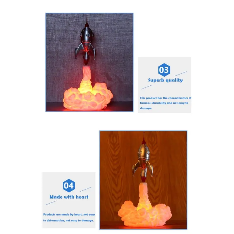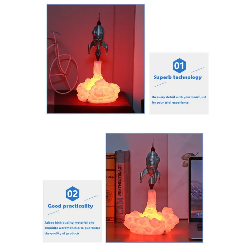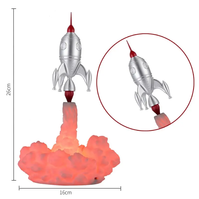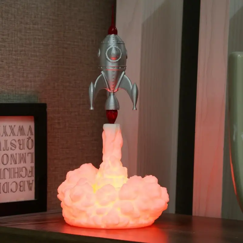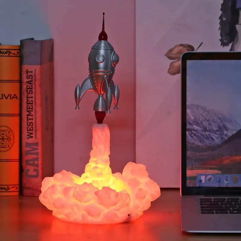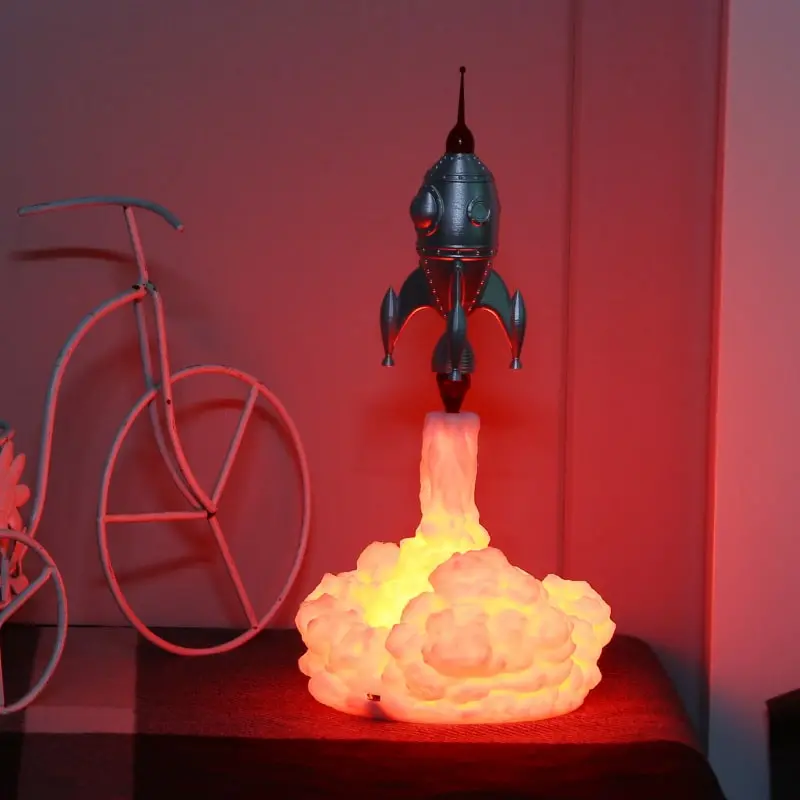 Den 3D printet ildspyende rumraket lampe, giver en fantastisk visuel illusion, som gør dit værelse mere interessant.