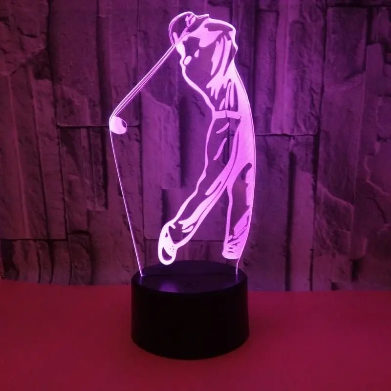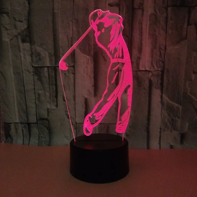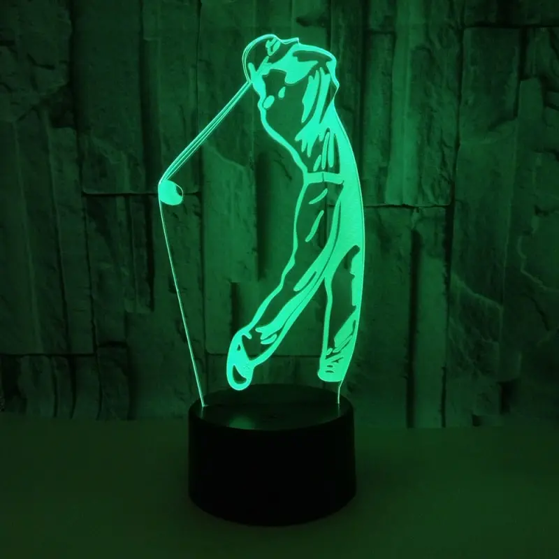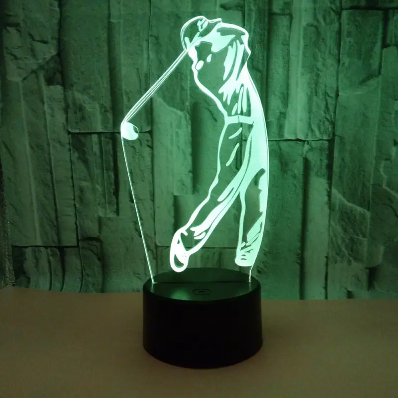 Så er denne 3D natlampe med en lysende golfspiller, lige noget for dig.