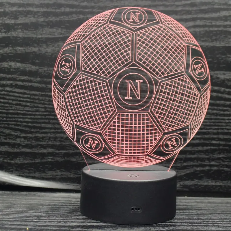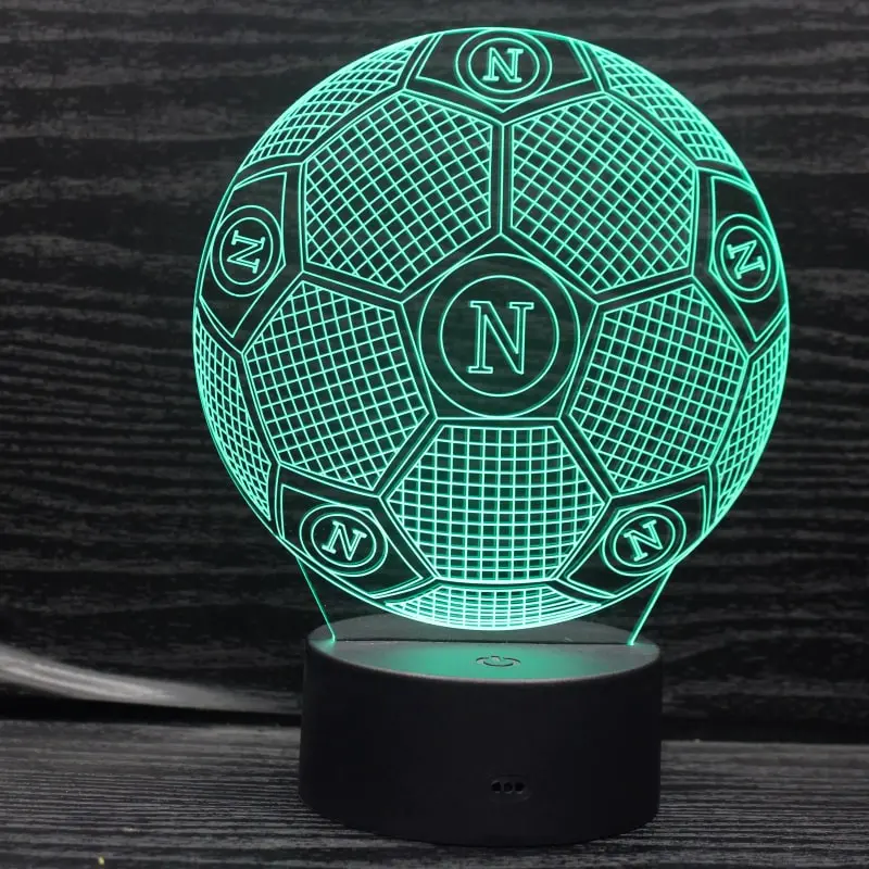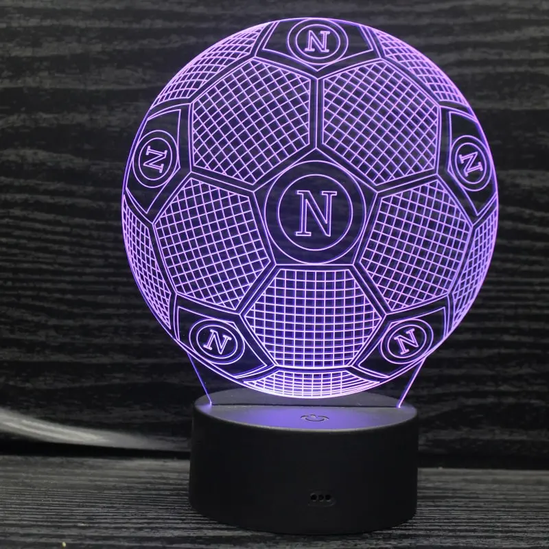 Denne 3D lampe er lavet af et optisk fladt akryl panel med laserindgravering, som giver en fantastisk 3D visuel effekt af en fodbold med Napolis flotte og meget velkendte logo.