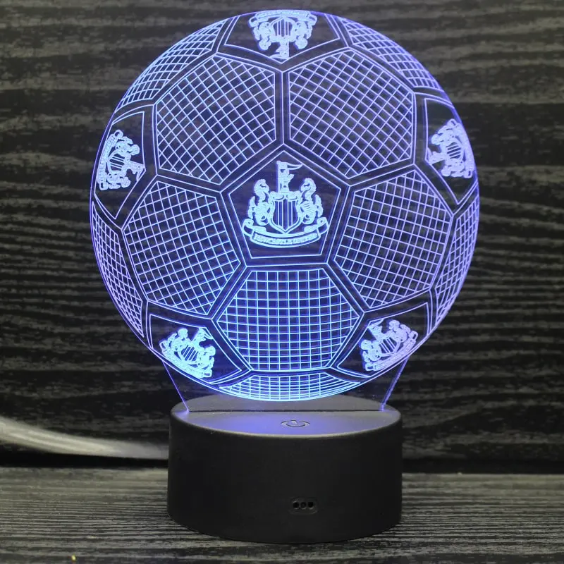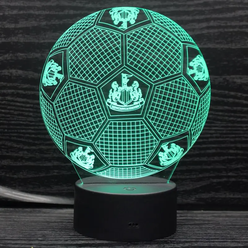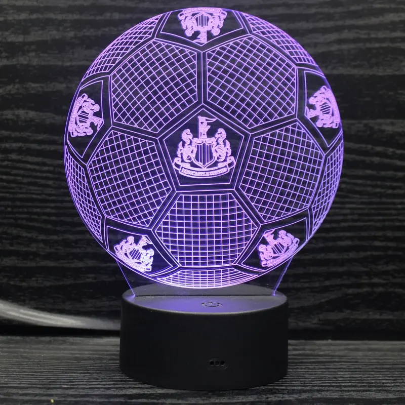 Denne 3D lampe er lavet af et optisk fladt akryl panel med laserindgravering, som giver en fantastisk 3D visuel effekt af en fodbold med Newcastles flotte og meget velkendte logo.
