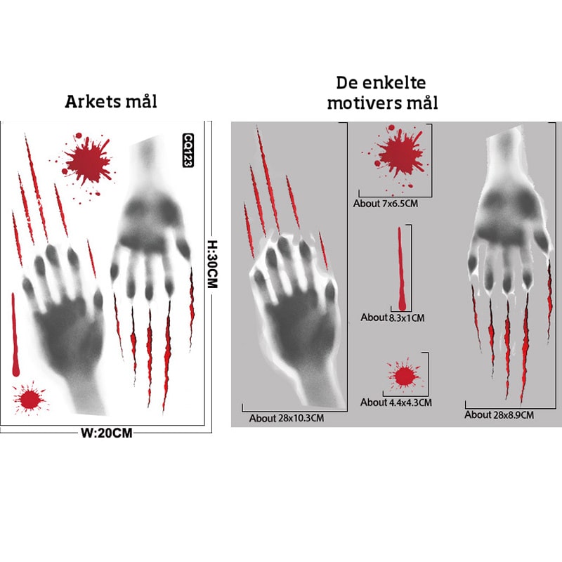 Uhyggelige Blodige Halloween Vinduesklistermærker. 6 forskellige motiver.