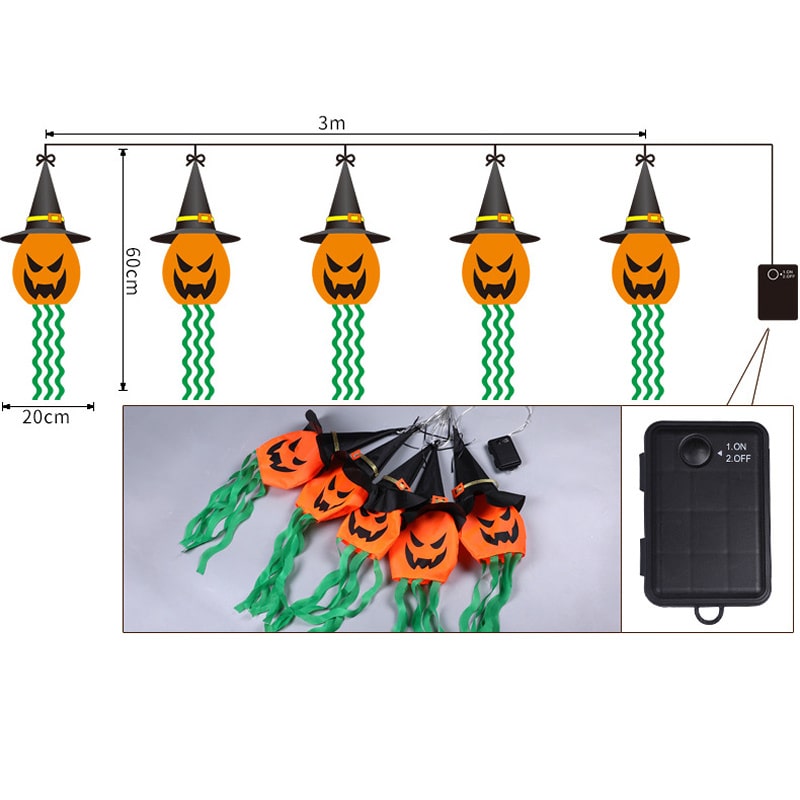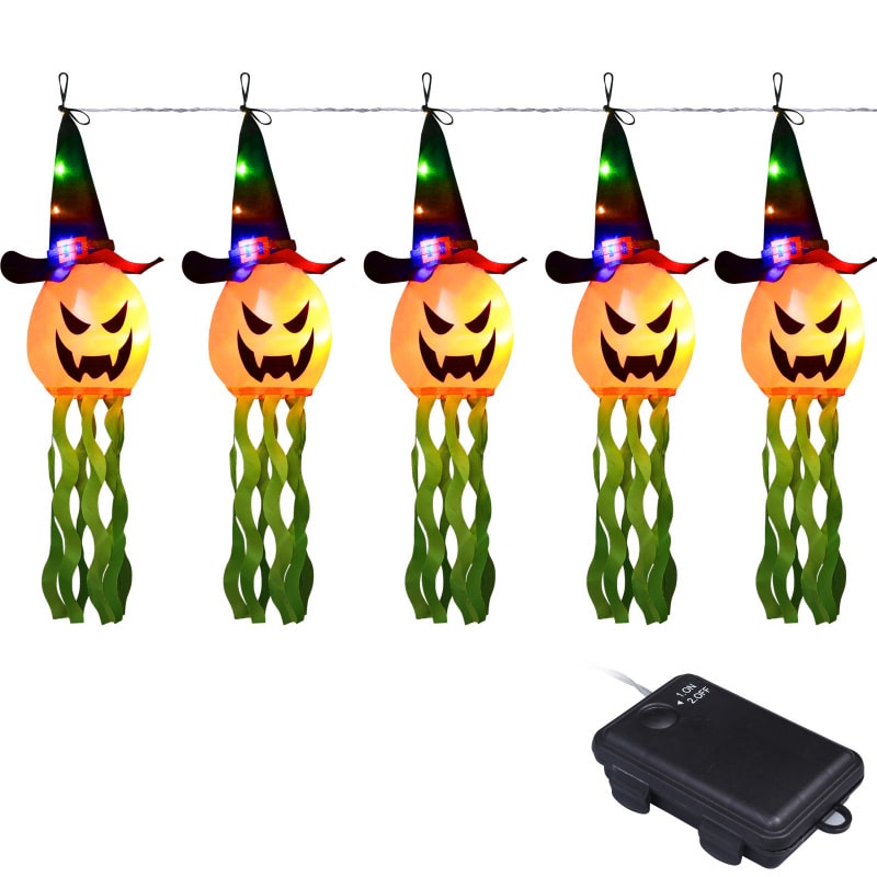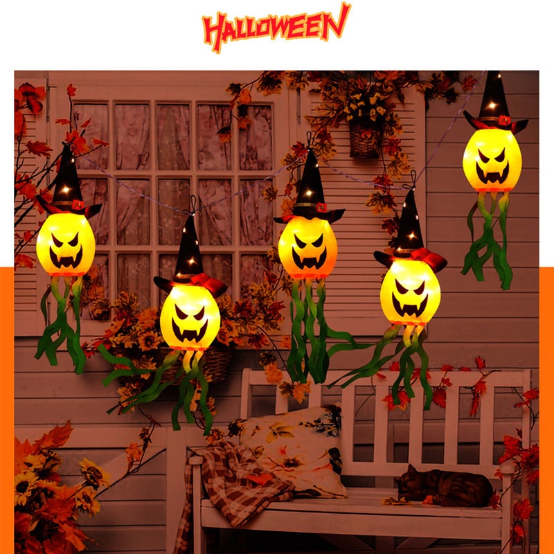 Uanset om du vil hænge den i vinduet, dekorere dit indgansparti eller skabe sjov stemning på børneværelset, vil denne lyskæde med LED-oplyste græskar tilføje et strejf af uhygge.