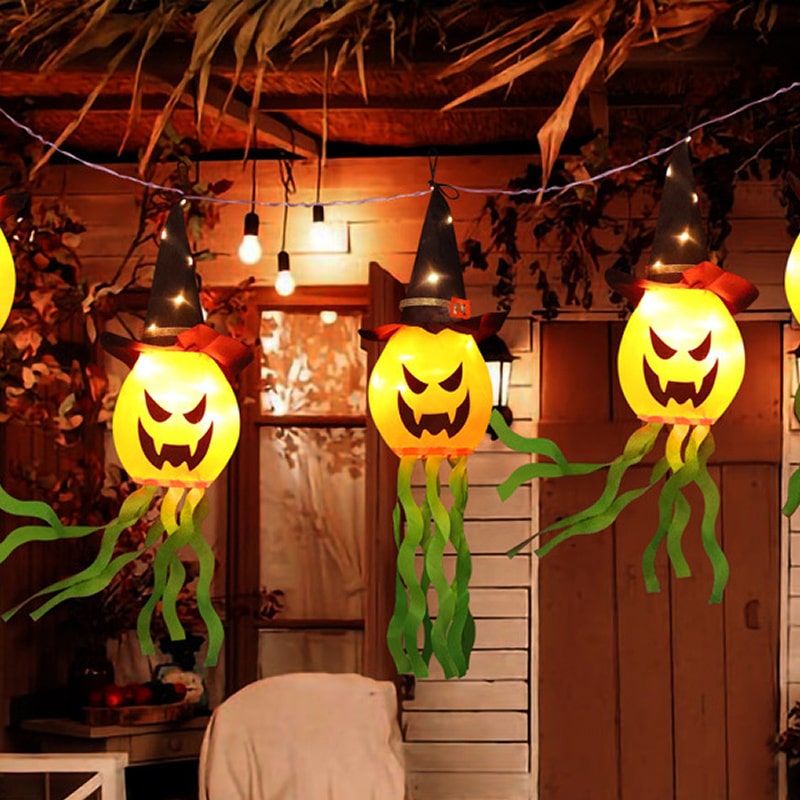 Forvandle dit hjem til en uhyggelig oase med vores græskar lyskæde, der er ideel til Halloween.