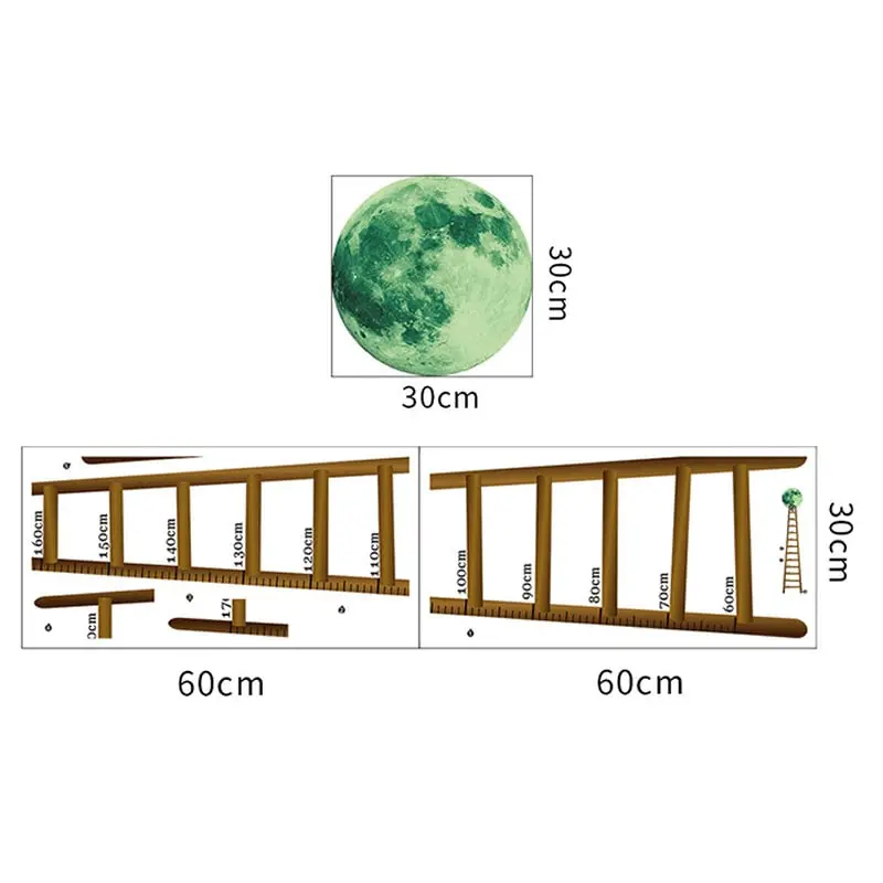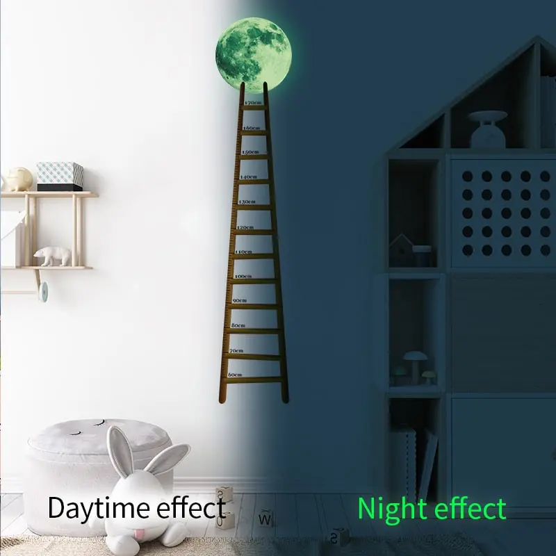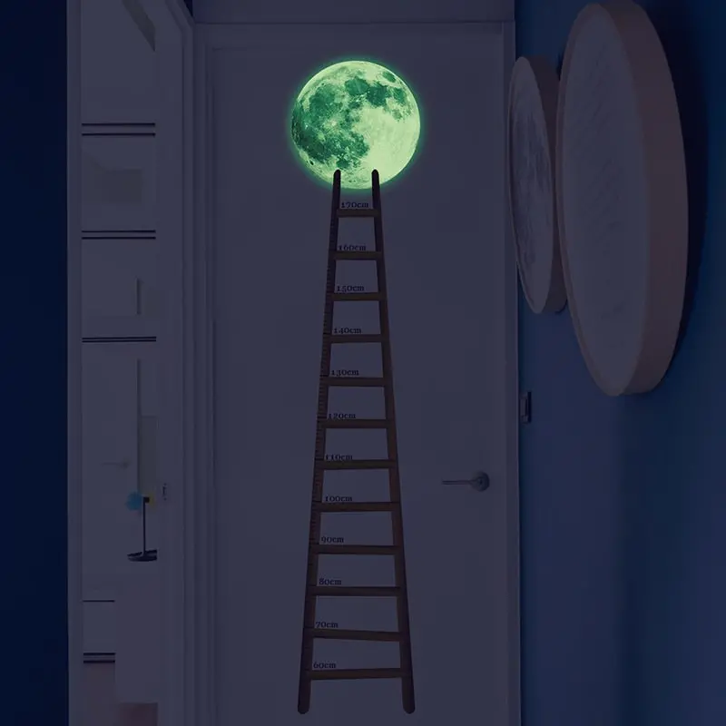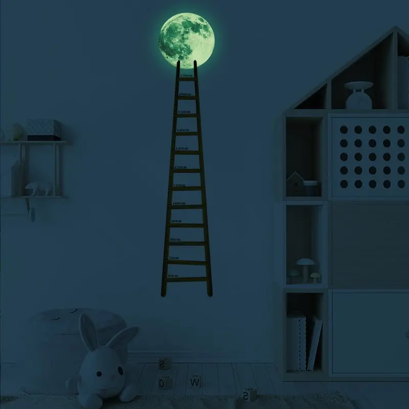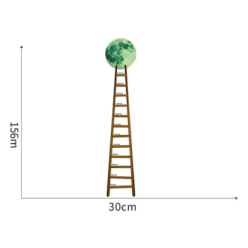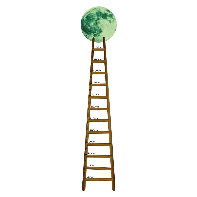 Virkelig sej selvlysende højdemåler wallsticker med et stort målebånd i form af en stige med en måne på toppen.