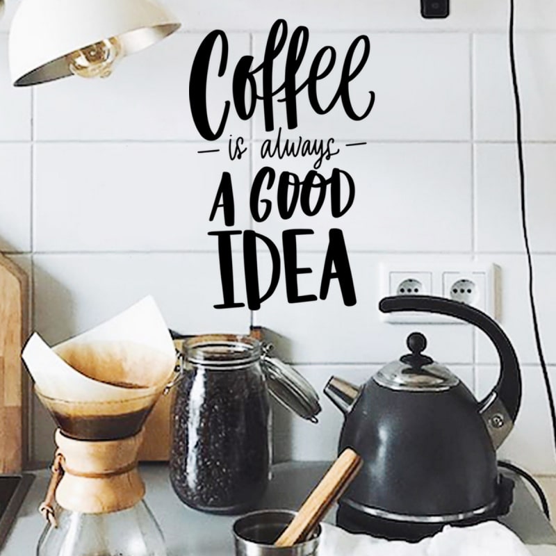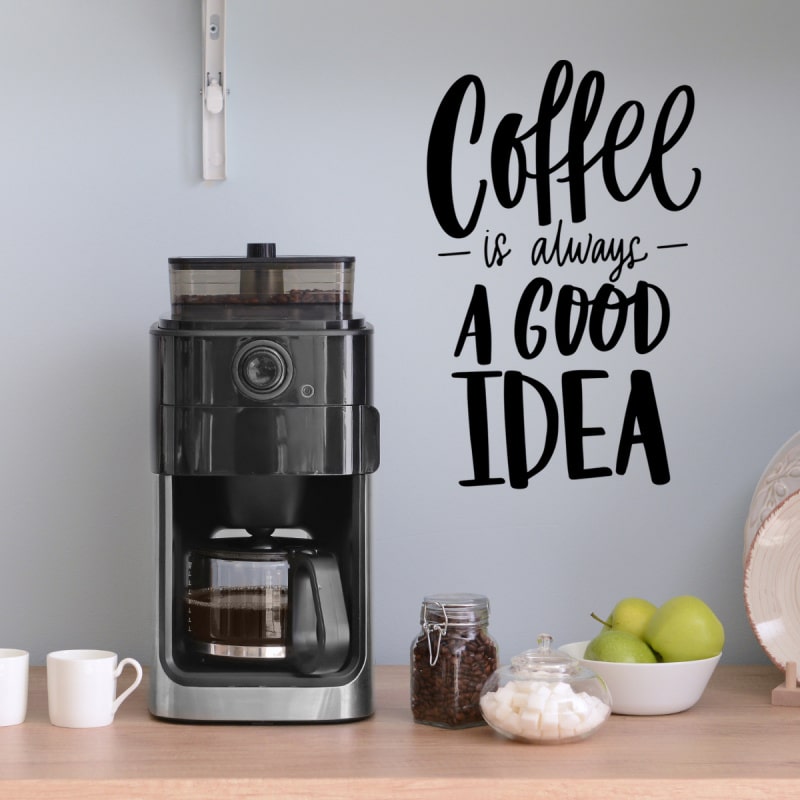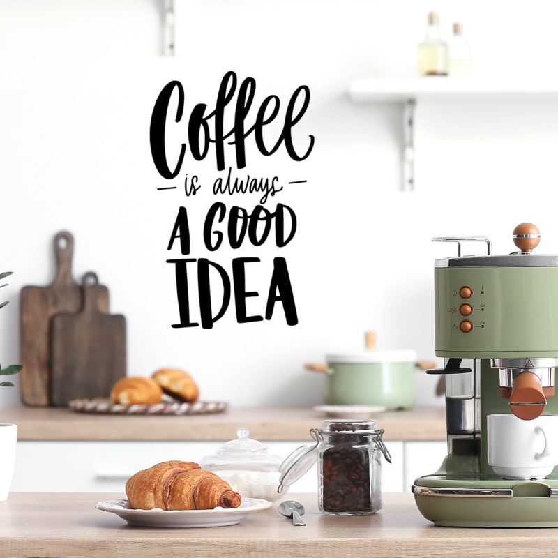 Vores Coffee Is Always A Good Idea wallsticker er det perfekte tilbehør til dit køkken, caféens kaffehjørne eller arbejdspladsen.