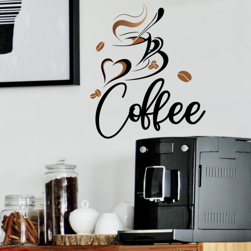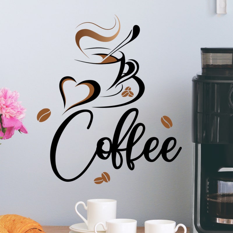 Vores Coffee wallsticker er det perfekte tilbehør til dit køkken, caféens kaffehjørne eller arbejdspladsen.