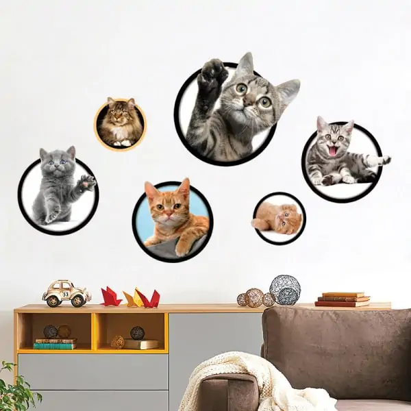 Mange er glade for katte,- og hvilken bedre måde at vise det på, end at have seks killinger på væggen, med denne flotte og søde wallsticker siddende på væggen, skabet eller andet.