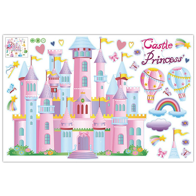 Wallstickeren indeholder foruden slottet også skyer, regnbue, sommerfugle, hjerter, stjerneskud og luftballoner.