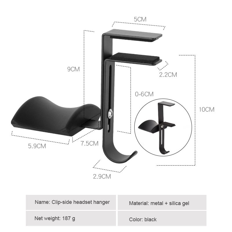 Antislip- og anti-ridse gummipuder gør høretelefon holderen skridsikker så headsettet ikke falder ned og en blød gummibelægning på klemmen, forhindrer ridser på bordets overflade.