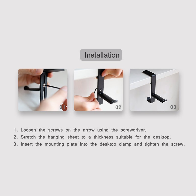 Passer til alle hovedtelefoner, så uanset om det er kablet hovedtelefoner, gaming headphones, bluetooth høretelefoner eller andet, så kan denne Headset Holder til montering på skrivebordet benyttes og sikre dig et flot skrivebord.