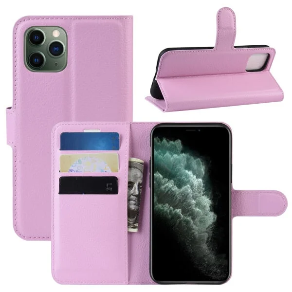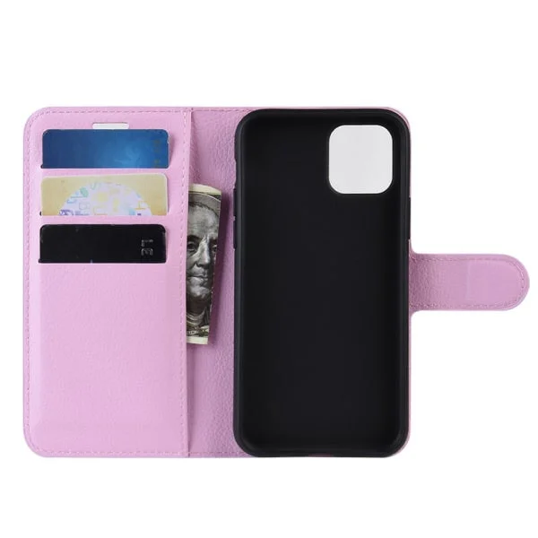 Få et flot iPhone 11 cover i lyserød i lækker kunstlæder og flot design med indbygget kreditkortholder.