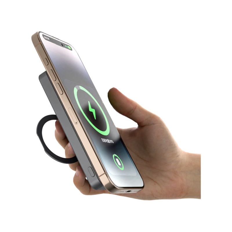 Det betyder, at du nemt kan fastgøre powerbanken magnetisk på bagsiden af din iPhone 12 eller nyere – helt uden kabler.