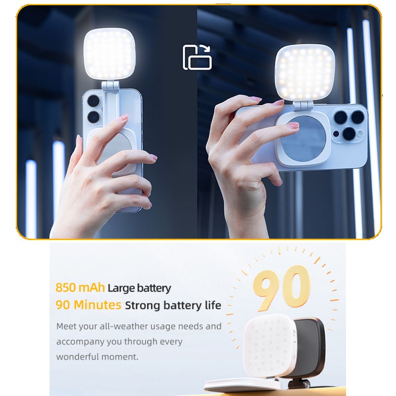 Opnå professionel lysopsætning til selfies, videokald, makeup eller indholdsskabelse med denne smarte og kompakte LED-lys-enhed.