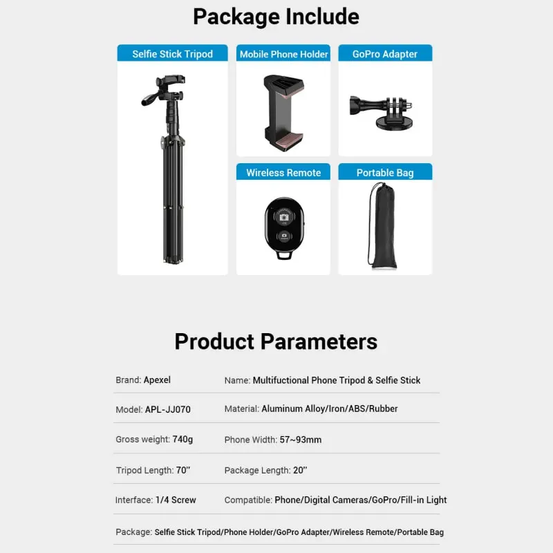 APEXEL universal Tripod Stativ har alt hvad du behøver for at få det perfekte billede.
