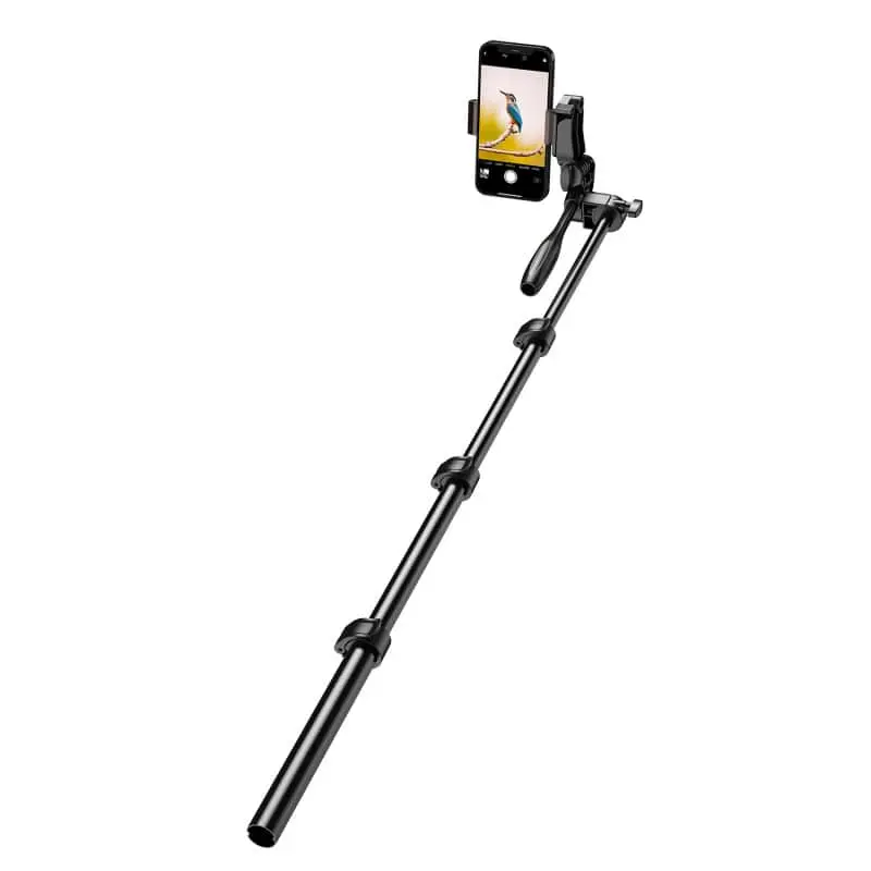 Dette multifunktionelle selfie stick stativ med fjernbetjening er lavet af holdbare højkvalitets materialer som med sin robuste konstruktion og sikre greb, sikre dig at din telefon bliver siddende fast, selv i de mest intense udendørs miljøer.