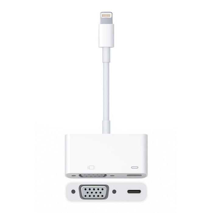 Takket være den integrerede Lightning-port kan du oplade din enhed samtidig med, at du er tilsluttet en projektor eller skærm via VGA.