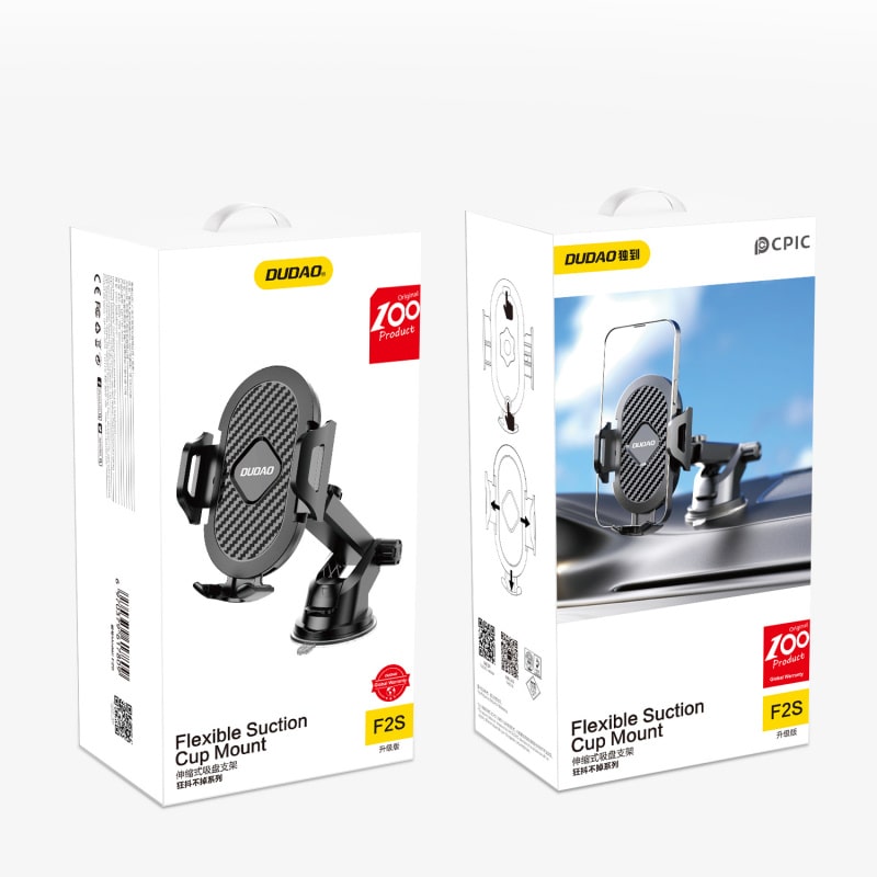 Oplev komfort og sikkerhed i ét stilfuldt design med Dudao F2S Upgrade – en udtrækkelig telefonholder, der monteres nemt på forrude eller dashboard med kraftig sugekop.