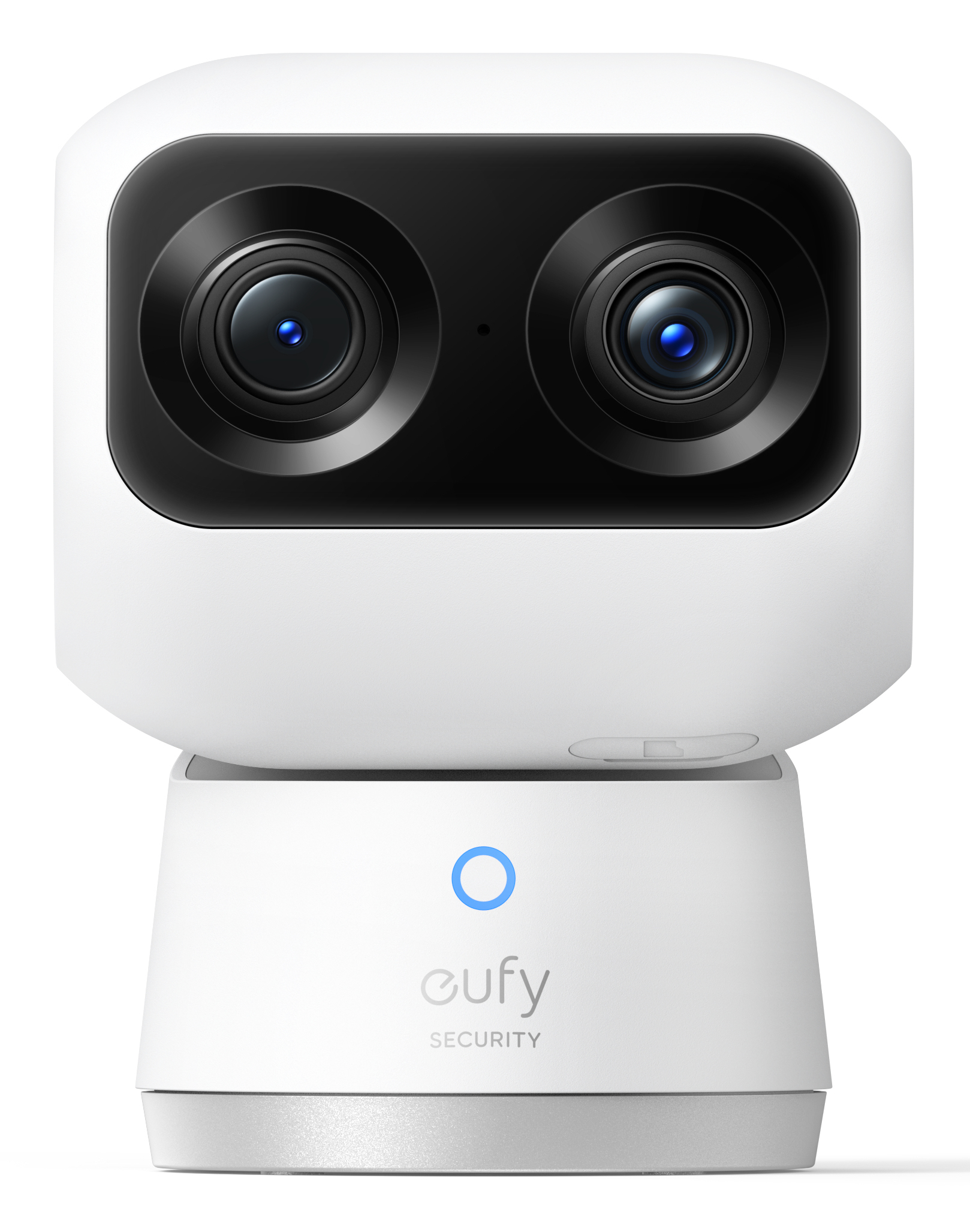 Eufy Indoor Cam S350. Type: IP-sikkerhedskamera, Understøttet placering: Indendørs, Forbindelsesteknologi: Trådløs. Monteringstype: Skrivebord, Produktfarve: Sort, Hvid, Formfaktor: Pære. Synsfelt vinkel (FOV): 360°. Digital zoom: 8x. Maksimal opløsning: 3840 x 2160 pixel