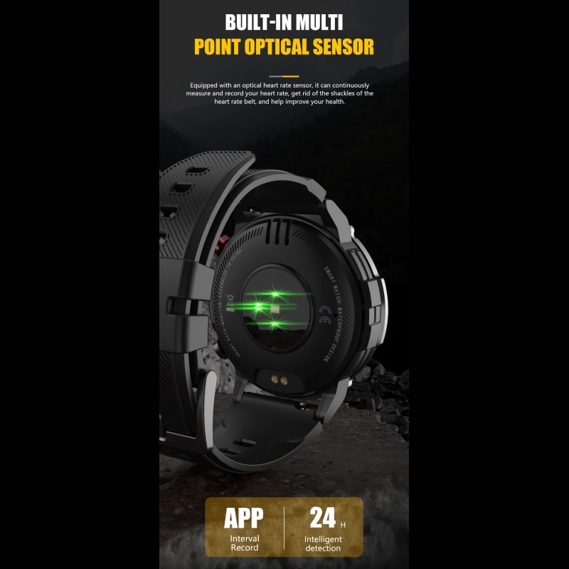 Til sine sensorer har LEMFO LF26 Max en HR3605, low power pulsmåler samt en blodtryksmåler.