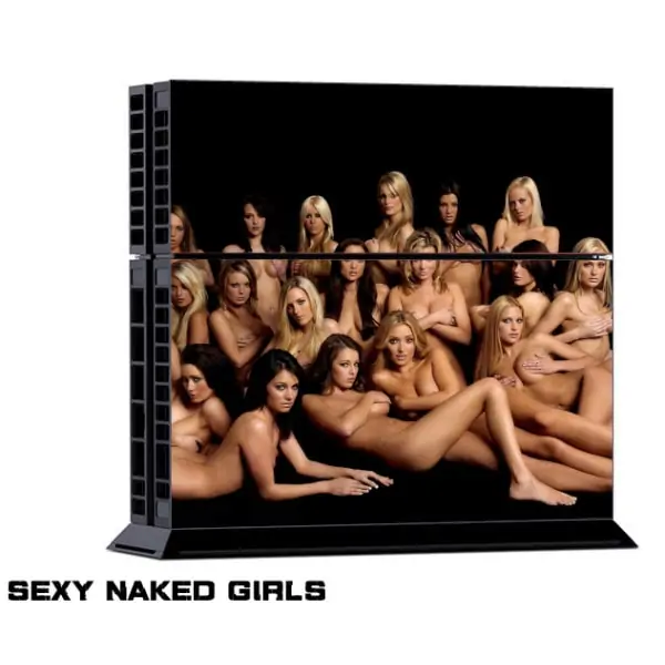Rigtig flot klistermærke/sticker med sexede nøgne piger prydende for- og bagsiden samt siderne på din PlayStation 4.