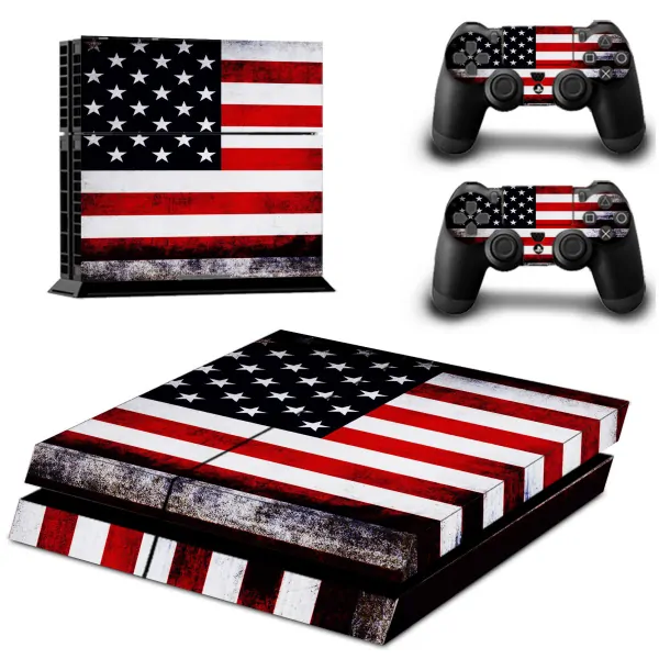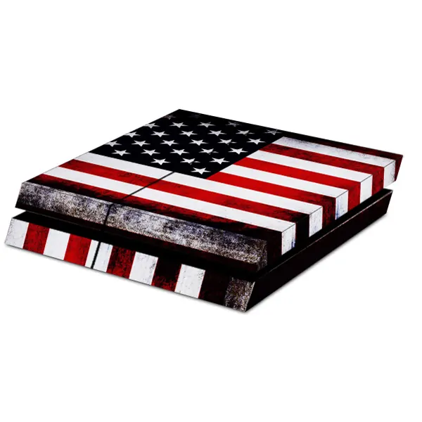Flot og retro PS4 sticker med et gammelt amerikansk flag, prydende for- og bagsiden samt siderne på din PlayStation 4.