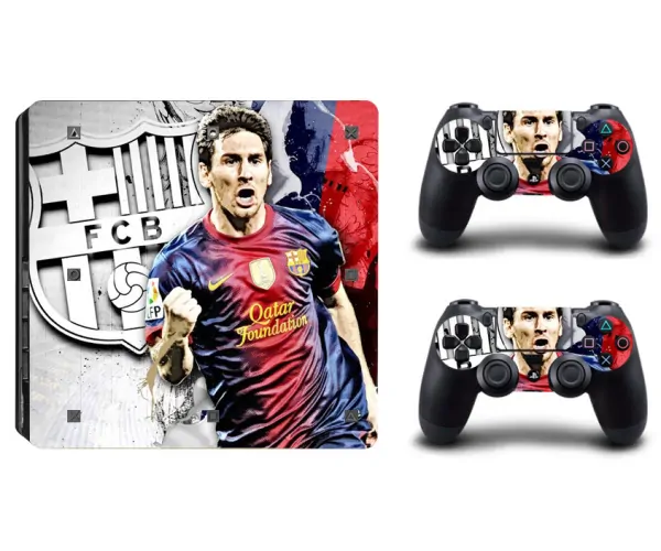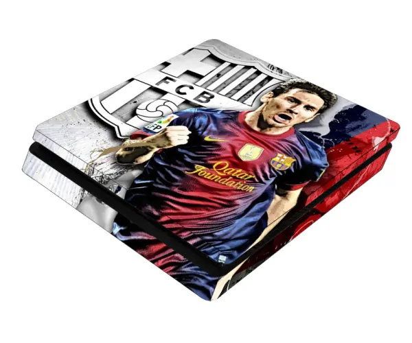 Rigtig flot PS4 Slim skin med FC Barcelonas stjernespiller Lionel Messi prydende for- og bagsiden samt siderne på din PlayStation 4 Slim.