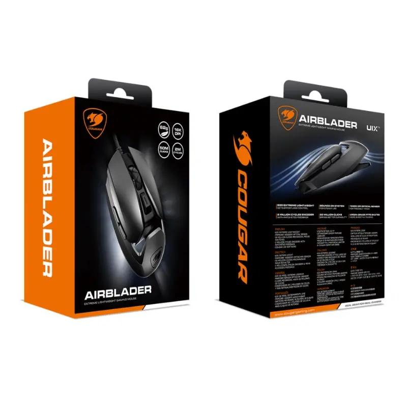Cougar Airblader Ultra light Gaming Mus er udviklet til at give spillere en uovertrufne ydeevne inden for det intense gameplay og er udstyret med højkvalitets mekaniske mikroswitche, som giver op til 50 millioner klik.
